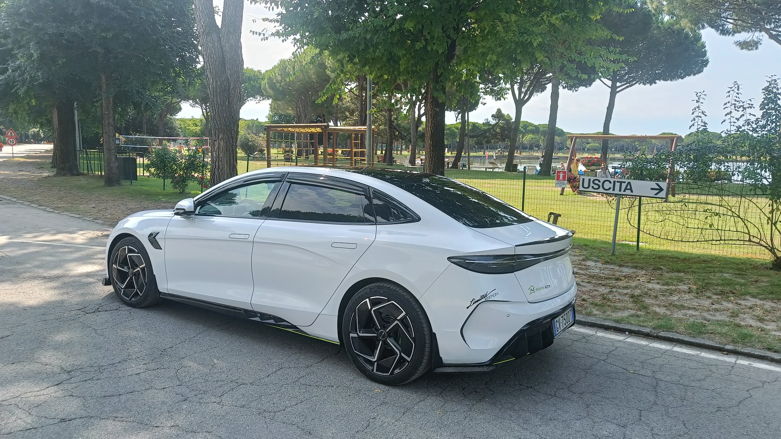 Die Fahrt nach Spiaggia Romea war durchwegs entspannt und komfortabel. Auf der rund 330 km langen Strecke zeigte sich der BYD Seal von seiner effizienten Seite – am Ziel angekommen verblieben noch etwa 25 % Rest Akku. Die Route führte über ca. 150 km Autobahn mit Tempo 135 km/h, etwa 120 km Schnellstraße mit Tempo 110 km/h sowie die letzten rund 60 km gemütlich über Landstraßen und durch kleine italienische Dörfer. Wir sind den Großteil der Strecke sogar ohne Radio gefahren – die Ruhe des Elektroantriebs und die vorbeiziehende Landschaft waren Klangkulisse genug. Ideal, um in Ruhe in den Urlaub zu rollen – emissionsfrei, leise und souverän.